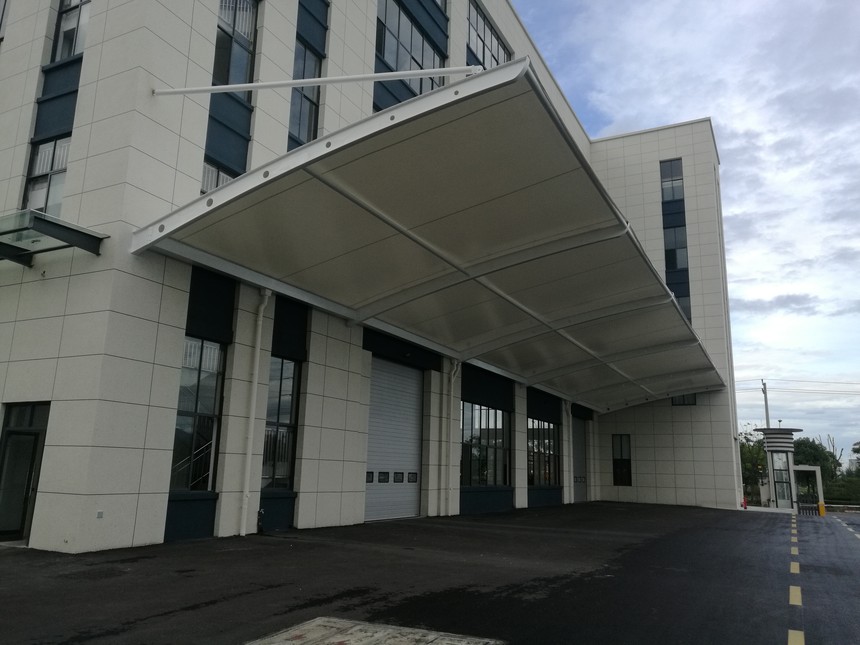 張拉膜白色膜布上海車(chē)棚膜布加工廠(chǎng) 工廠(chǎng)門(mén)頭雨棚圖片門(mén)口
